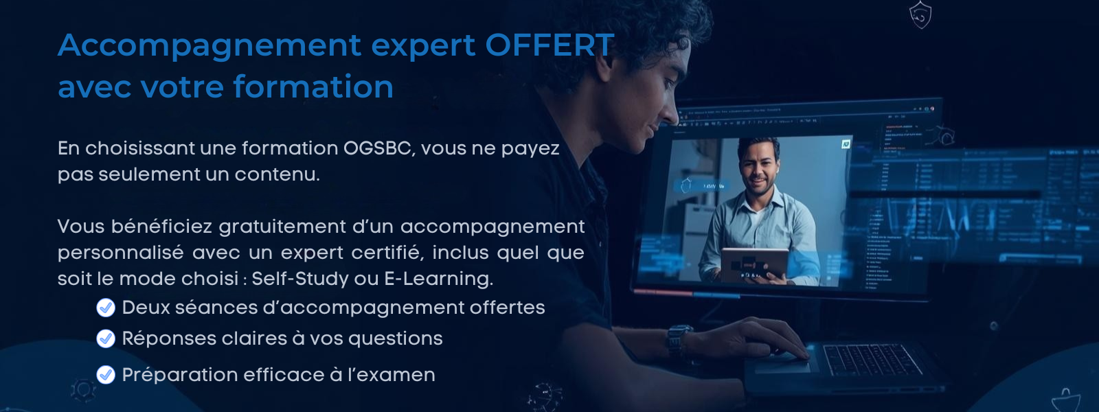 Nous vous remettrons un code coupon pour planifier un examen en ligne et faire une demande de certification, une fois l’examen réussi.